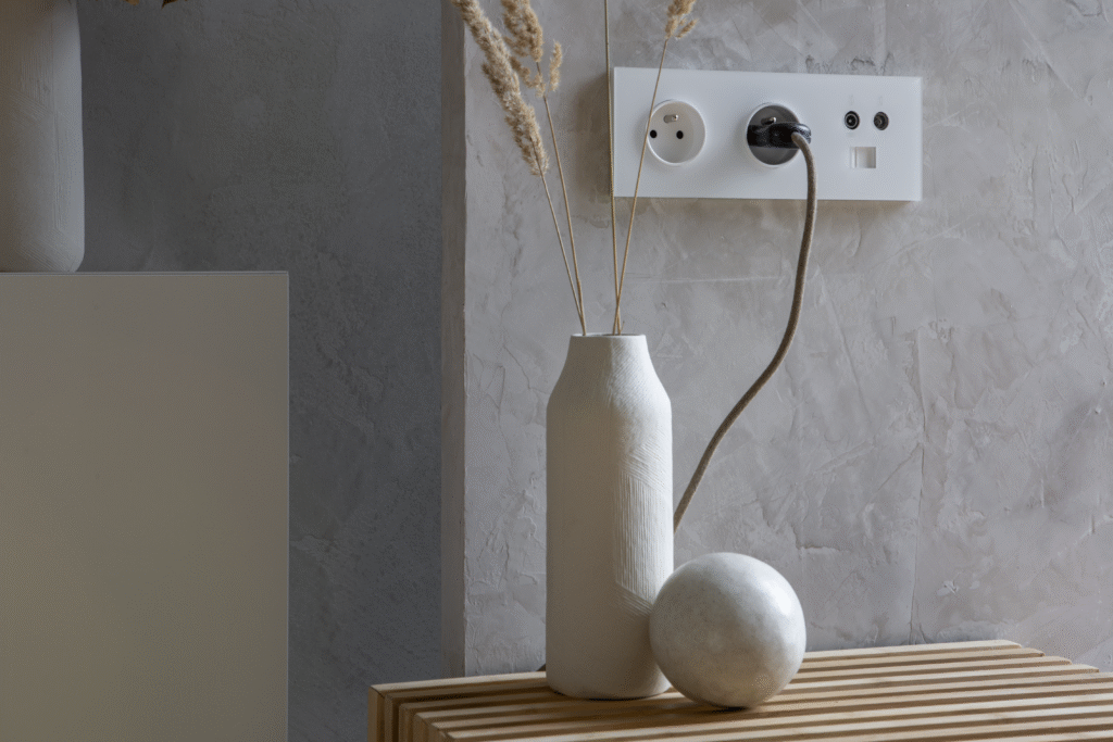 Nowoczesna kolekcja łączników i gniazd o nieszablonowym wyglądzie i delikatnym załączaniu.