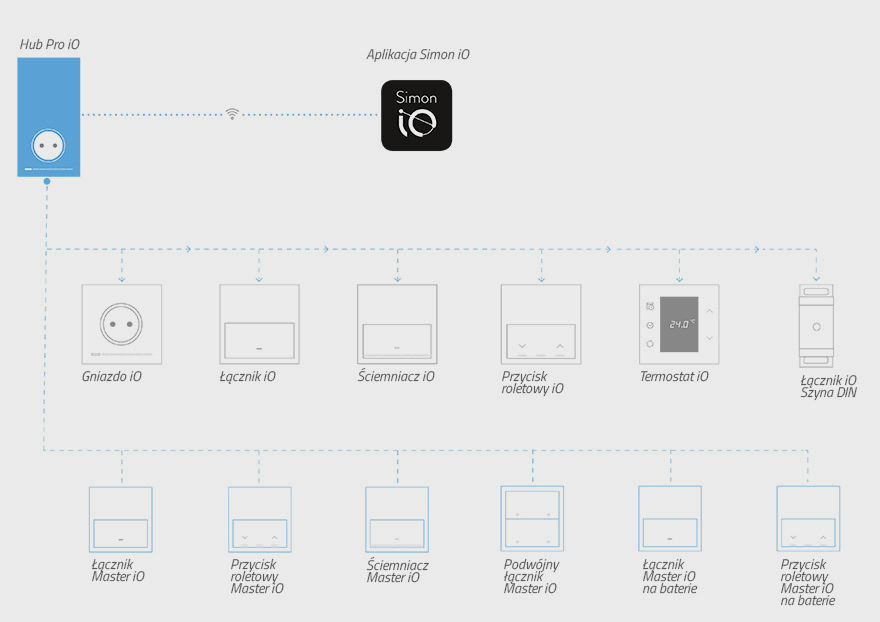 SIMON 100 iO może zmienić Twój dom w dom inteligentny bez konieczności wprowadzenia zmian do tradycyjnej instalacji, specjalnego okablowania czy nowej rozdzielni elektrycznej. SIMON iO jest kompatybilny z asystentami głosowymi taki jak Google Assistant, czy Amazon Alexa.