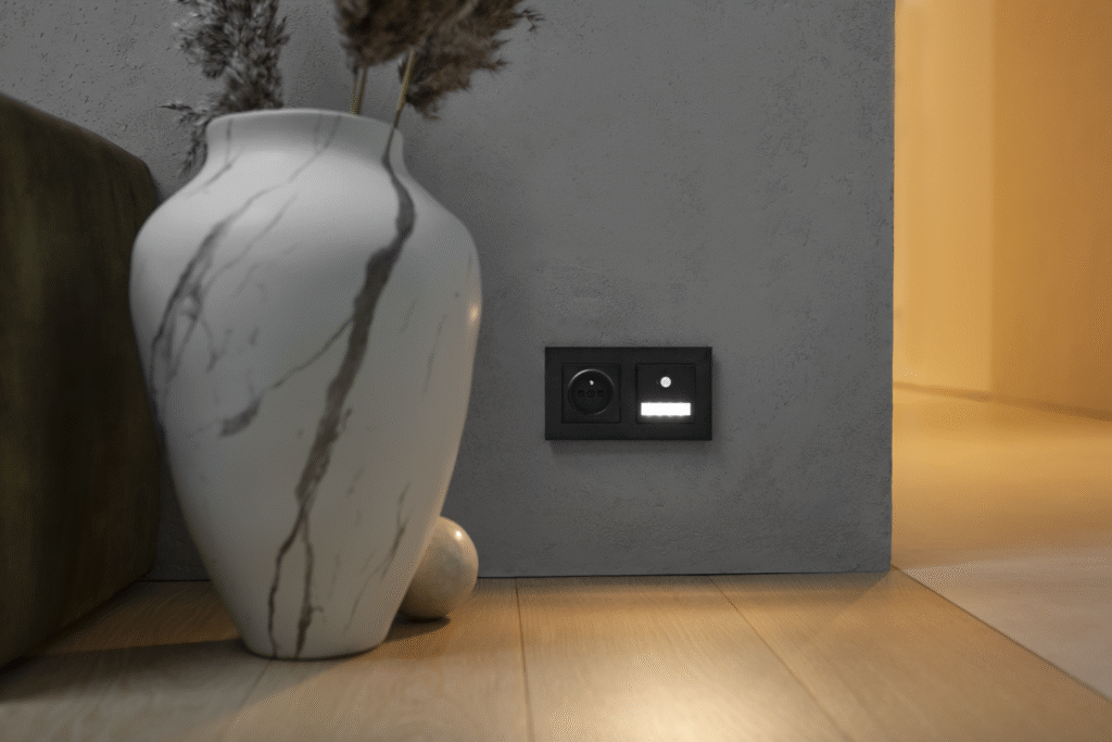 Oprawy oświetleniowe zachowują spójny wygląd z łącznikami, ściemniaczami i gniazdami. Możesz zamontować je w ramce pojedynczej lub wielokrotnej, żeby stworzyć praktyczny zestaw, np. z gniazdkiem zasilającym.